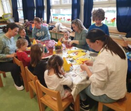 Včeraj, 24. 3. 2026, smo v rumenem delu našega vrtca izvedli SPOMLADANSKO USTVARJALNO DELAVNICO. Najprej smo prisluhnili doživetemu branju slikanice "BRAVO, PUTKA!". Sledile so ustvarjalne delavnice, kjer smo v prijetnem vzdušju izdelovali izdelke, s katerimi smo prinesli pridih pomladi in prihajajočih se velikonočnih praznikov.