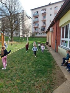Na igrišču smo izvedli kros – otroci so se pomerili ločeno (dečki in deklice) in nato še skupaj. Kros smo ponovili še več dni.