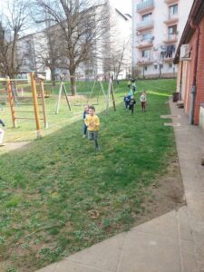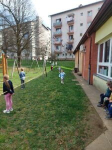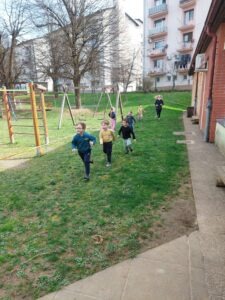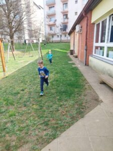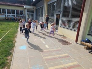 Na igrišču smo izvedli kros – otroci so se pomerili ločeno (dečki in deklice) in nato še skupaj. Kros smo ponovili še več dni.