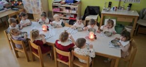 V vrtcu smo za otroke in odrasle pripravili slavnostno kosilo, s katerim smo ustvarili posebno vzdušje in se skupaj začeli veseliti prihajajočih praznikov. Takšni trenutki so dragocena priložnost, da otrokom na prijeten in doživljajski način približamo pomen bližajočih se praznikov.
