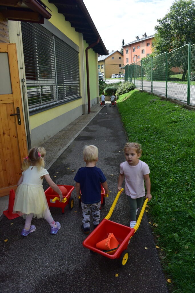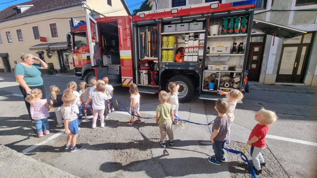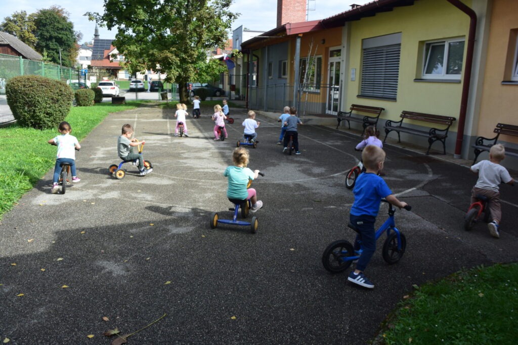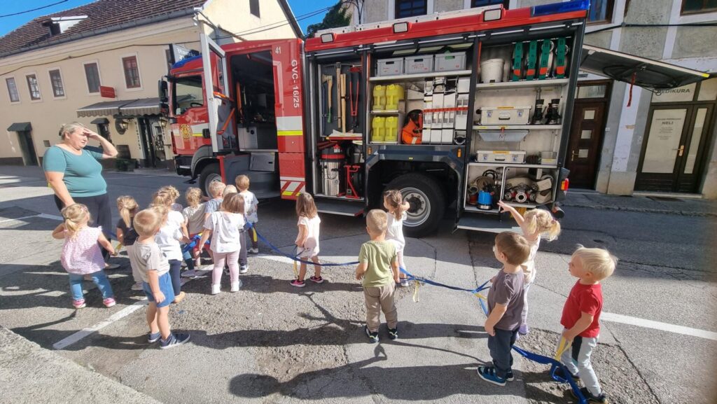 V tednu mobilnosti so se nam odvijale različne zanimive dejavnosti. Obiskali smo gibalni poligon pri Občini Metlika, si ogledali gasilski, policijski in reševalni avto, se vozili s poganjalci, prevažali samokolnice ter odšli na sprehod do železniške postaje. Bilo nam je zelo zanimivo.