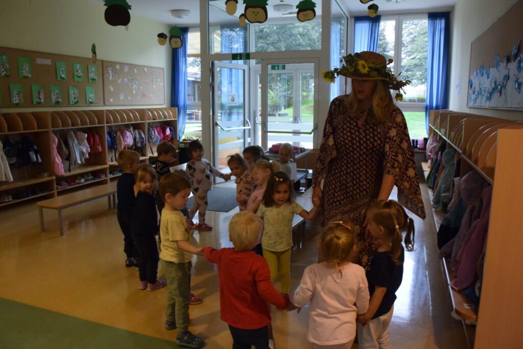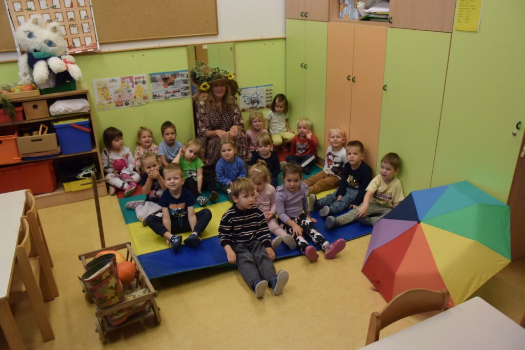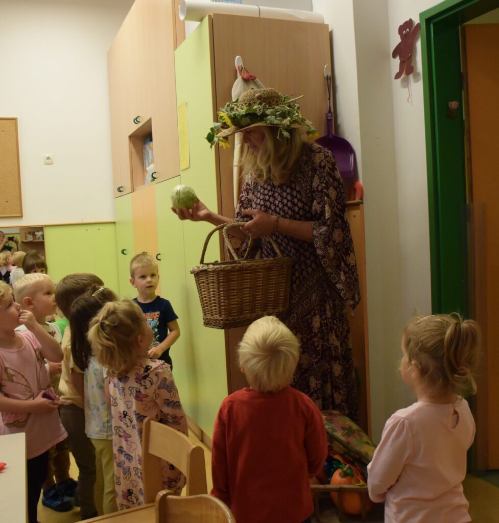 Po obisku botre Jeseni, ki nam je podarila veeeliko košaro različnih jesenskih pridelkov, smo si vse podrobno ogledali, opisali, primerjali, okušali in se veliko igrali z njimi. Poslušali in peli smo pesmi o jeseni in uživali na 101 način. 🌽🍐🍅🍄🟫🌻🥕🍂🍎🫑🌰🧄🫘🥬🌶️ (več …)