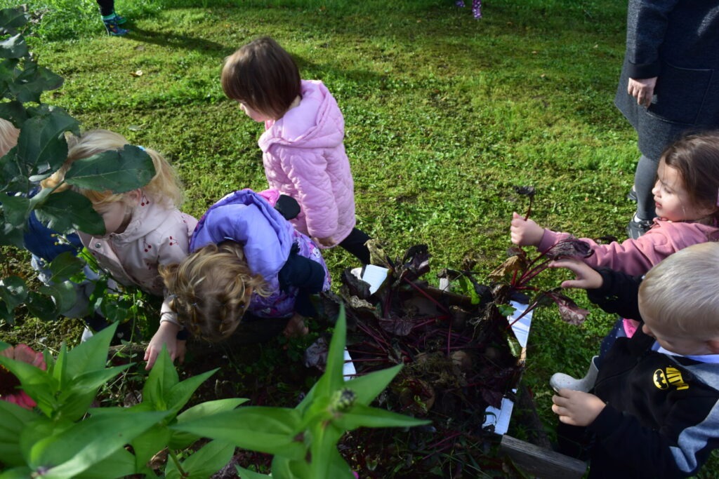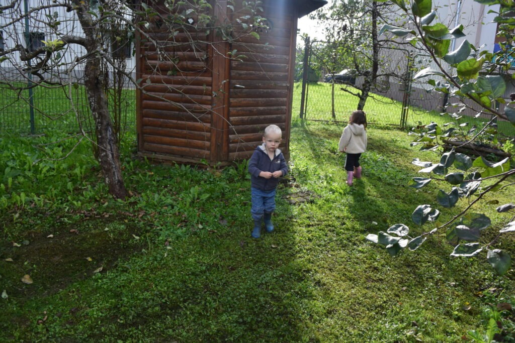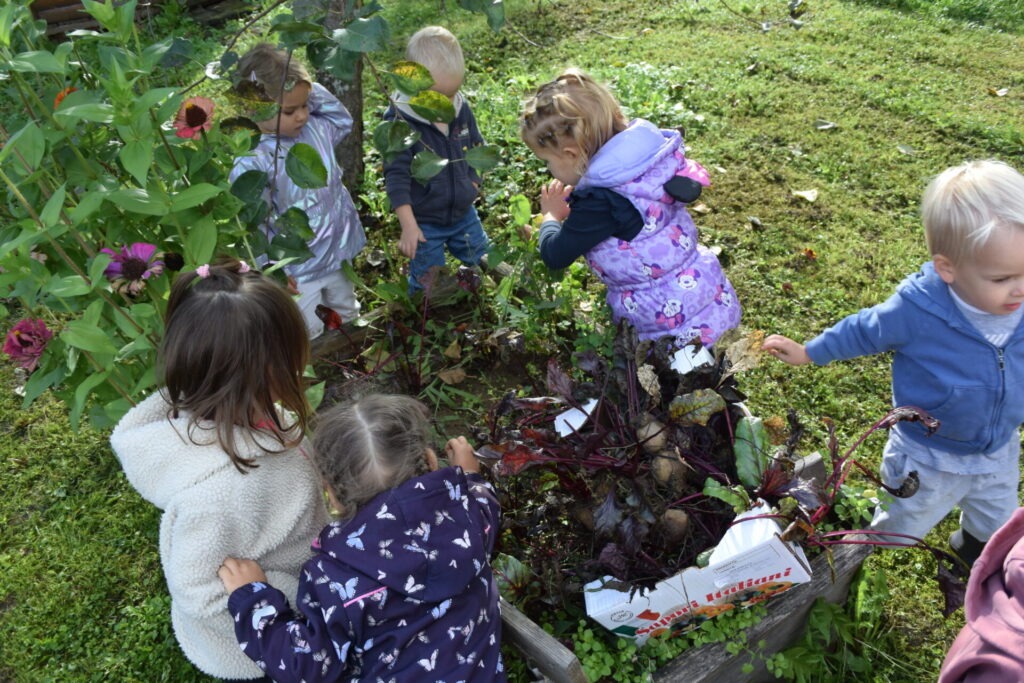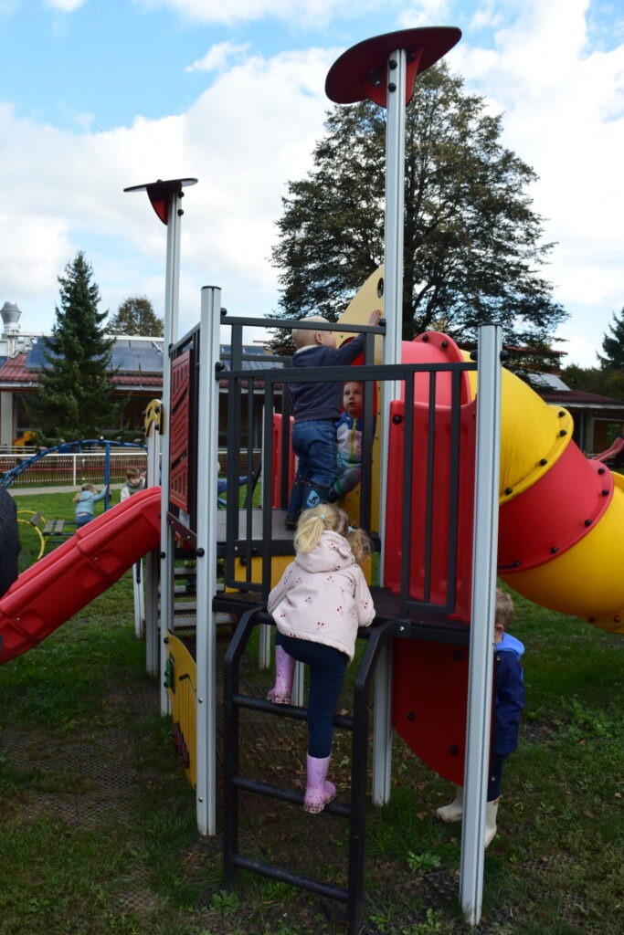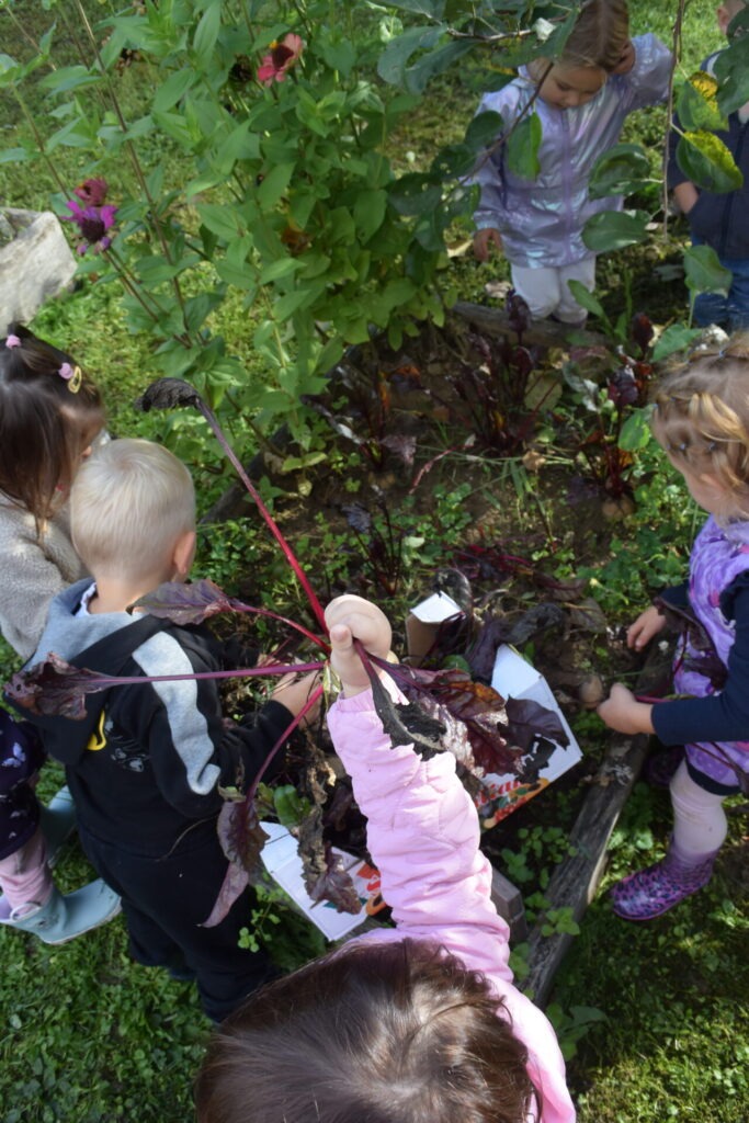 Pa smo le dočakali, da je bilo igrišče prazno in smo ga imeli samo zase :). Obuli smo škornje, se veselili in se dobro razgibali. Edino hlače so bile malo umazane. Obenem pa smo pobrali še rdečo peso, ki nam je zrasla na vrtu. Naslednji teden pa se bomo posladkali z njo.