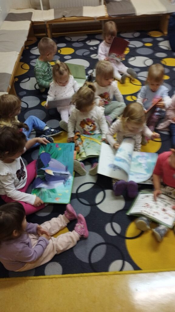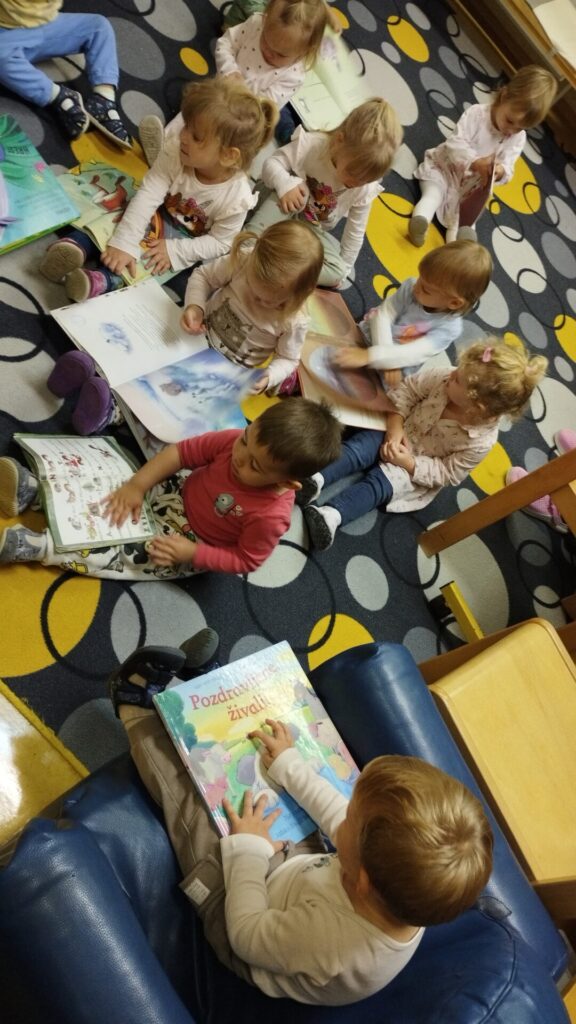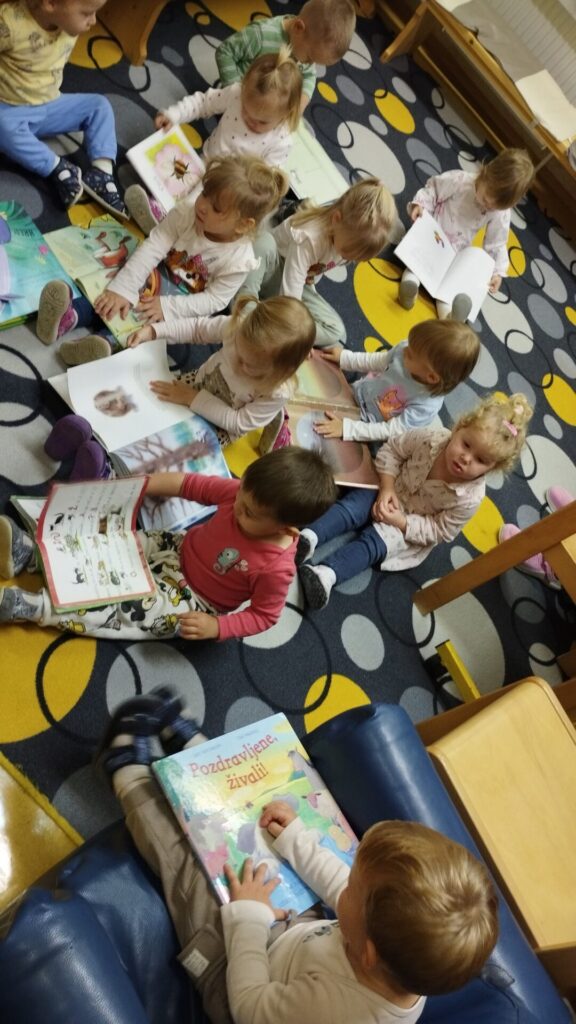 Naše male Lisičke so že zrasle in zato smo se preselili v igralnico Žabic. Pridružile so se nam še tri Miške in dve novinki. Nova igralnica je prostorna in nudi nam veliko priložnosti za raziskovanje in gibanje. Sledi nekaj utrinkov prvih dni.... Ko se odpravimo na sprehod, gremo velikokrat mimo papagaja Žaka. Tokrat smo si ga ogledali od blizu. Na kolesarski stezi smo se vozili s poganjalci in tricikli. Obiskali smo Ljudsko knjižnico, kjer nas vedno z veseljem pričaka knjižnjičarka Katja. smart smart Ko gremo na daljši potep si vedno vzamemo prigrizek…