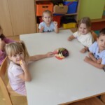 Ga. Mirna je otrokom na zanimiv način predstavila delavnico Kaj dela medicinska sestra in kaj dela zdravnik. Otrokom je bila delavnica všeč in vsi so želeli sodelovati. Seveda pa smo se zato naslednje dni igrali ustvarjalno igro Zdravnik. Še se bomo igrali, saj se otroci zelo vživijo v različne vloge.