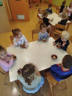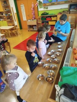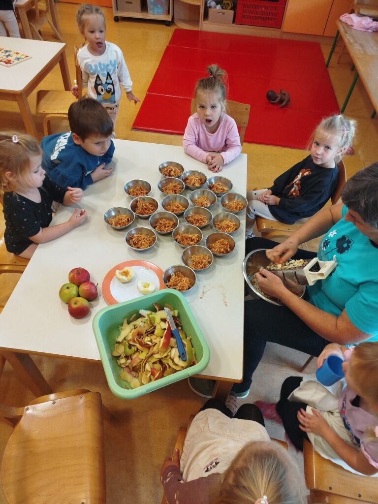 Pripravili smo si zdravo malico – olupili in naribali smo jabolka ter jih posuli s cimetom (kdor je želel).
