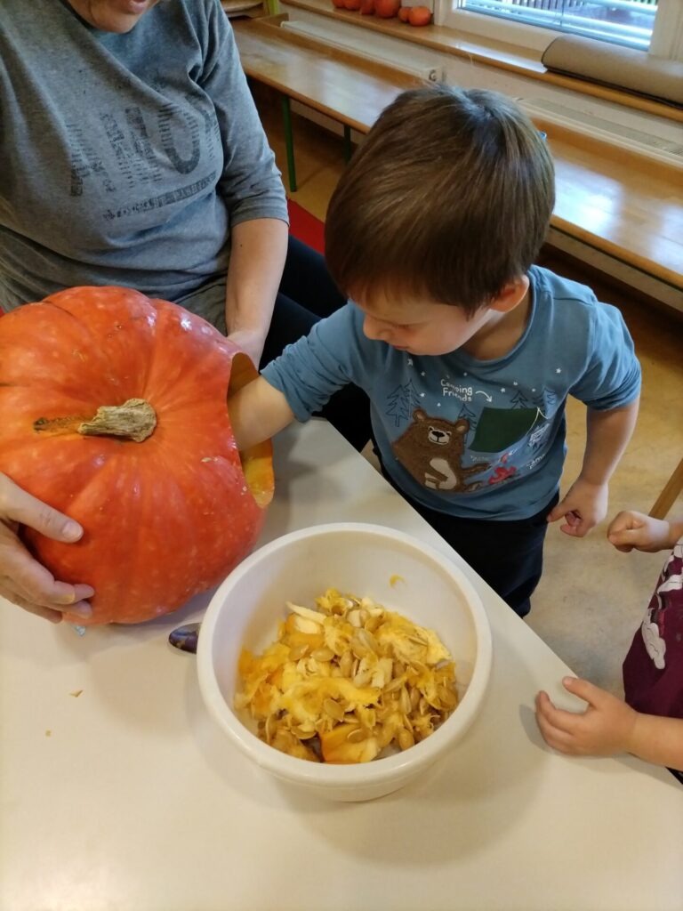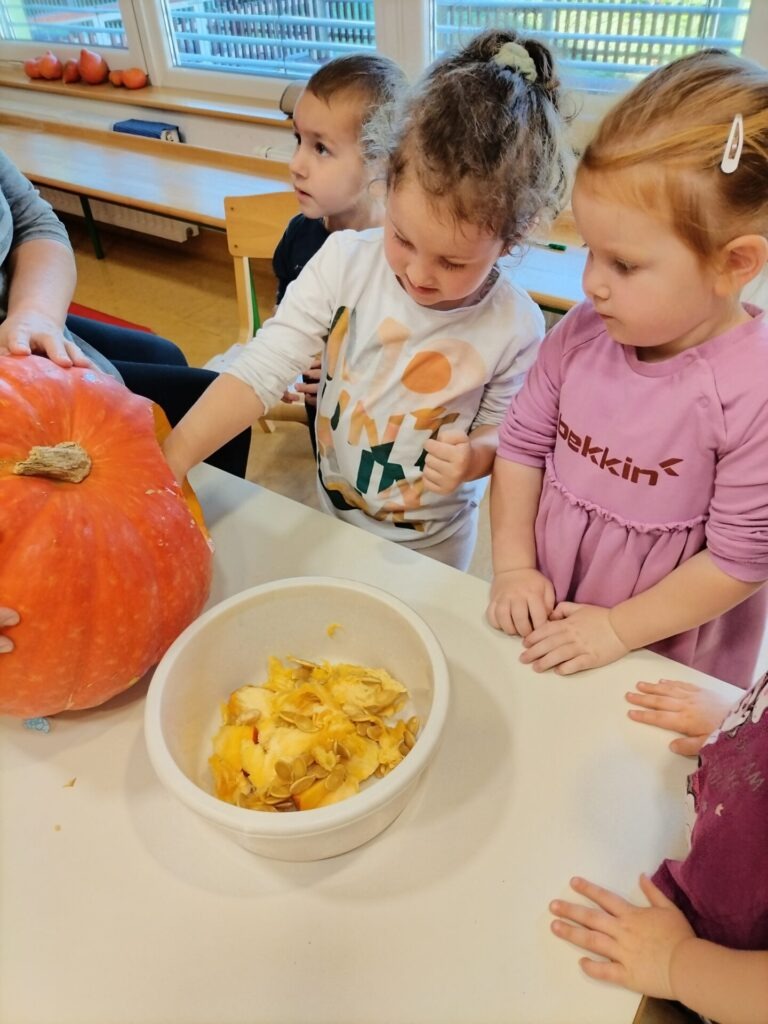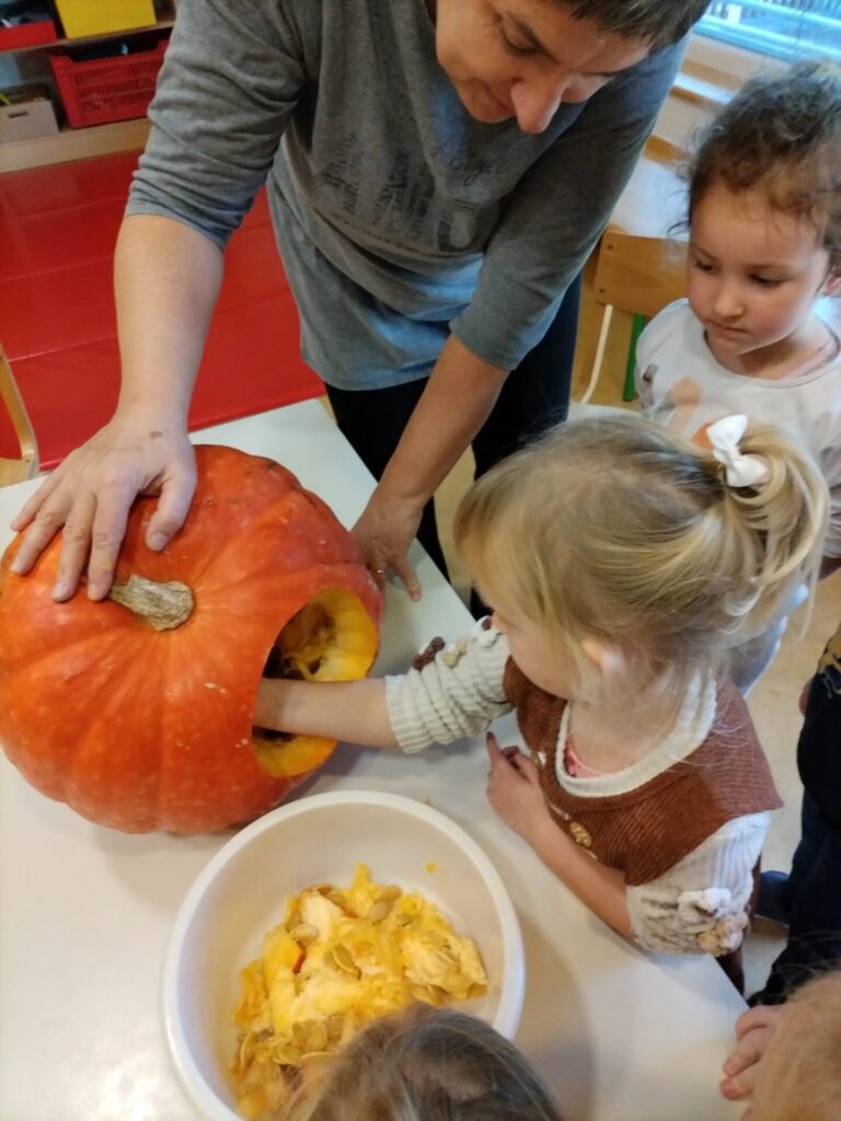 Tudi bučo smo izpraznili in jo izrezali za noč čarovnic.
