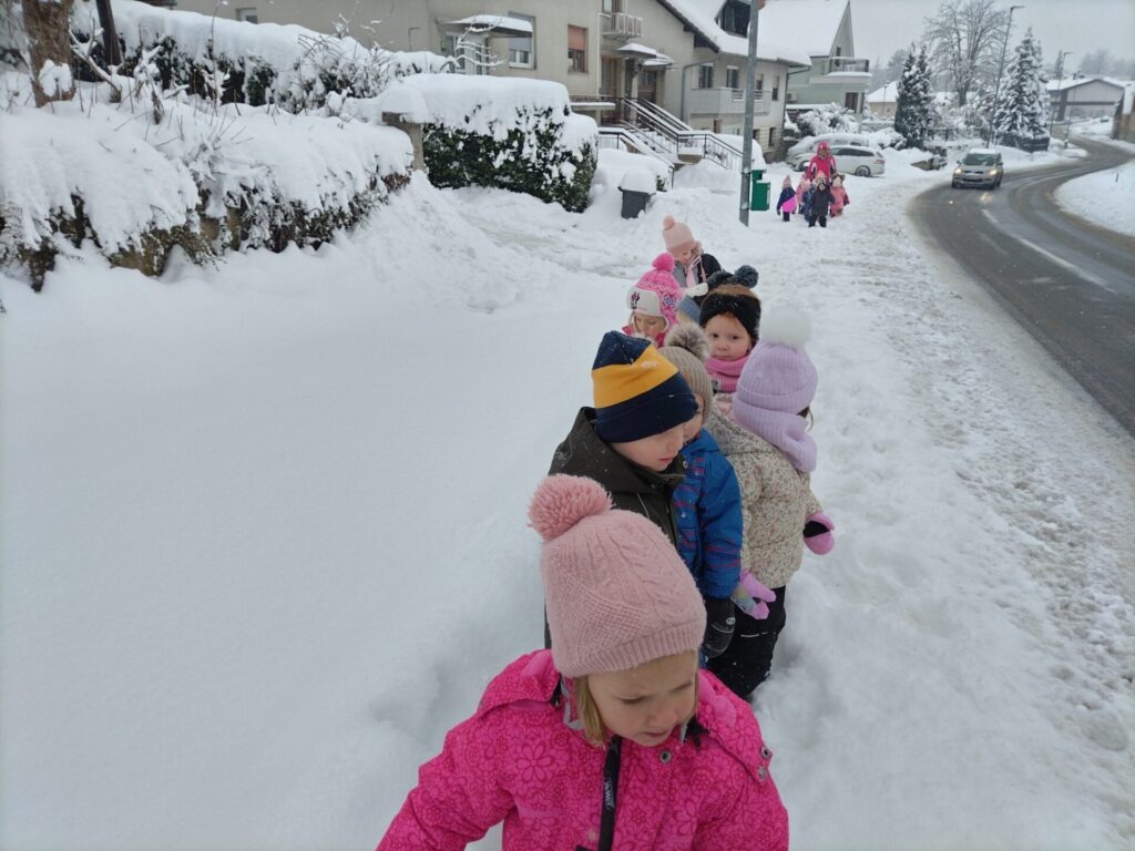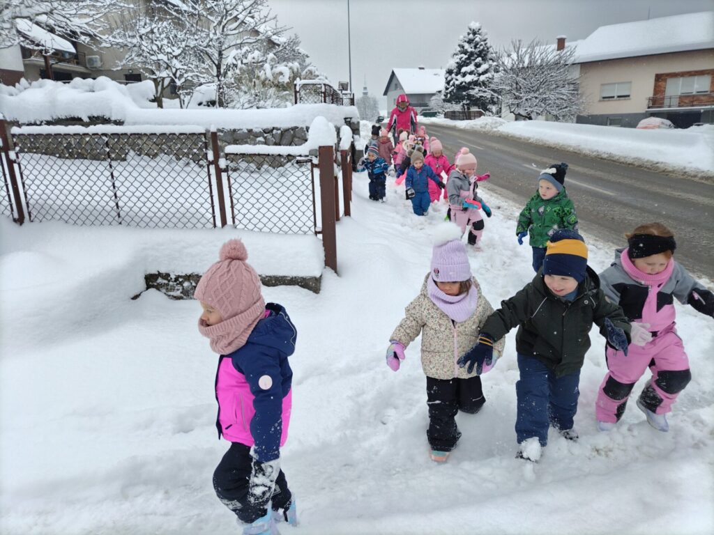 Še pot nazaj v vrtec in na topli napitek. Otroci so uživali…