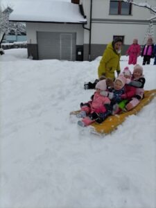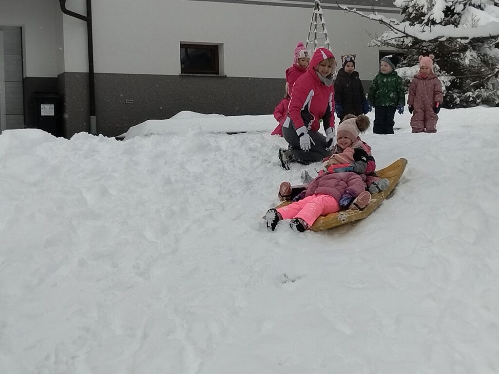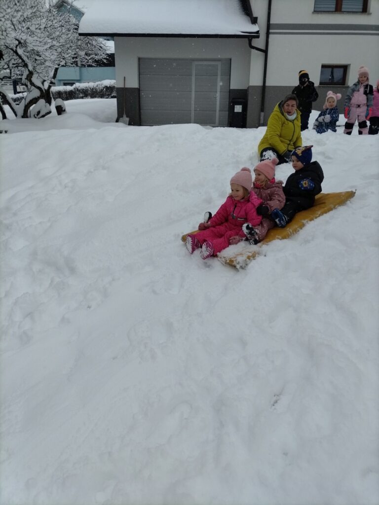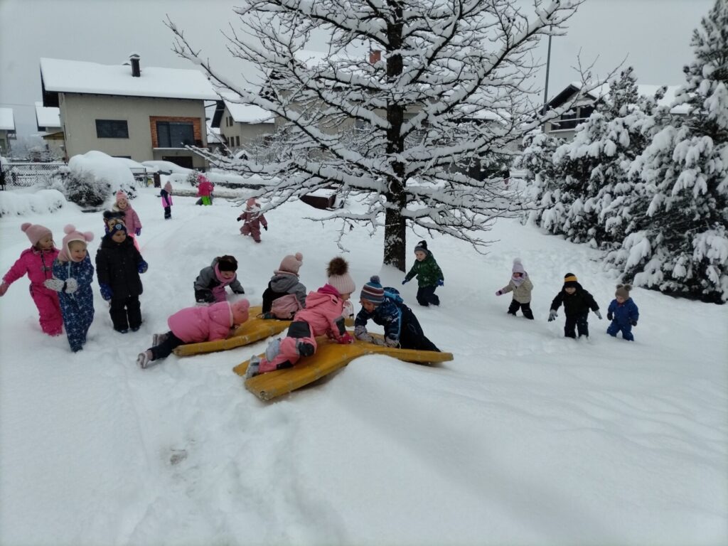 Zima nas je obdarila s pravo obilico snega in tako smo pri Žabicah imeli dan poln veselja in zimskih radosti.