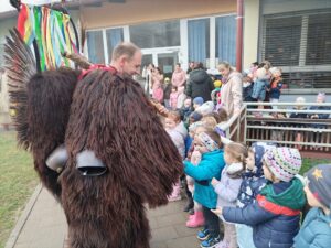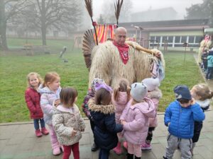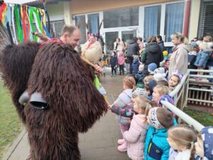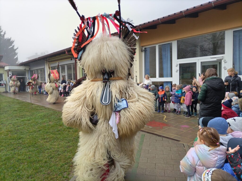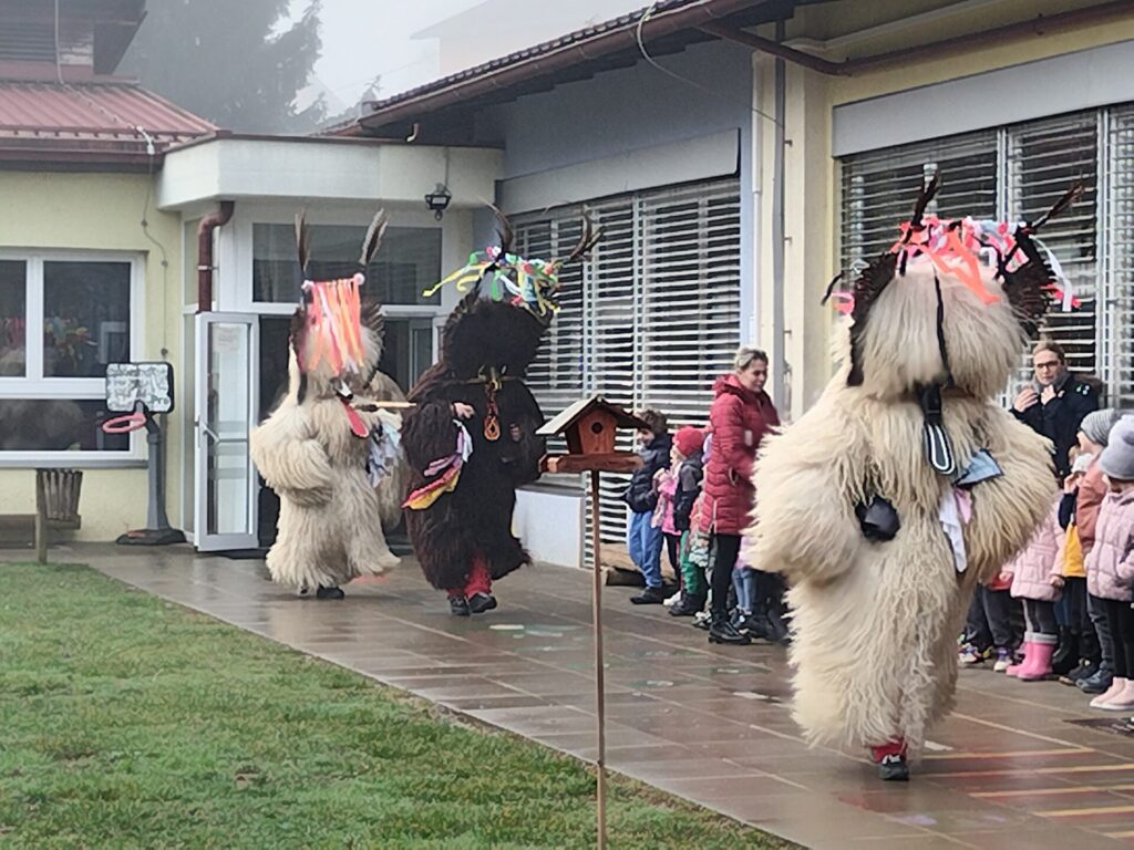 Danes so nas obiskali kurenti in nam polepšali dopoldan. Pripeljali so se kar s traktorjem in pričarali pravo pustno vzdušje.