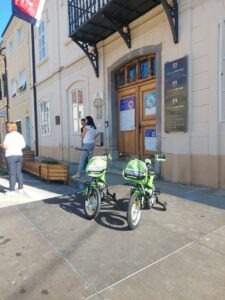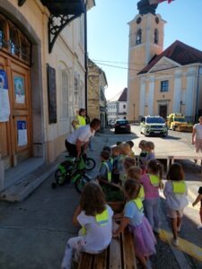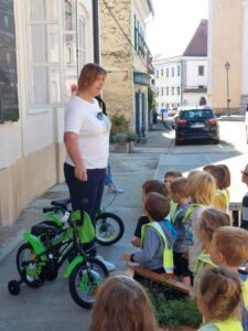 V sklopu ETM je Otroški vrtec Metlika s prisotnimi otroki na Mestnem trgu, od Občine Metlika, prevzel dve novi kolesi.